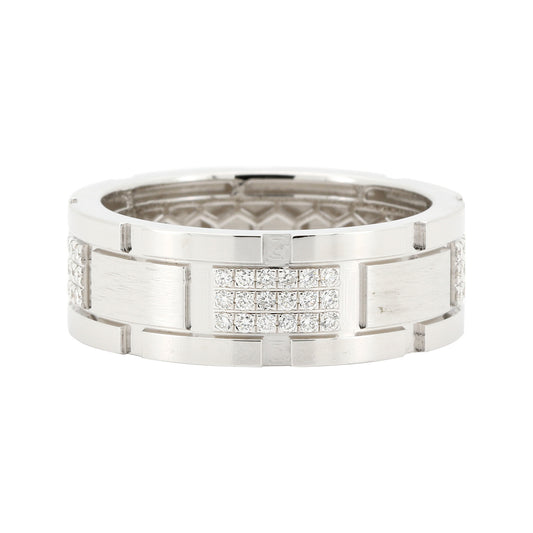 Men's Geometric Band Ring, 14K Gold Plated Sterling Silver, Lab Diamond Eternity Band, CNC Finish, Modern Wedding Gift