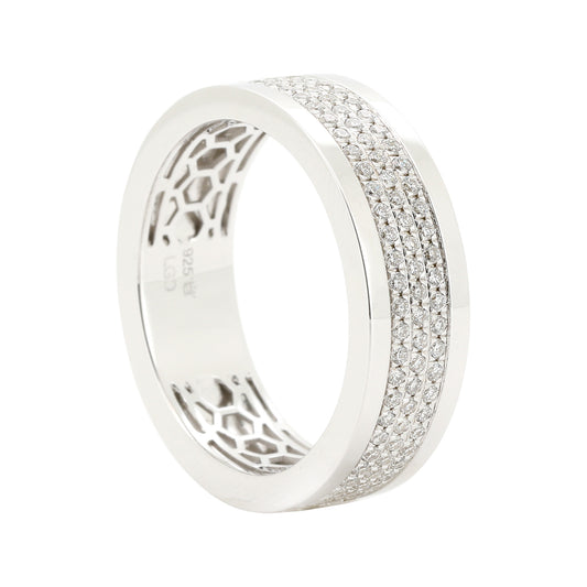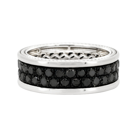 Men’s Diamond Band Ring 14K Gold Plated Silver Two Row Lab Grown Diamonds Setting Textured Inner Design Wedding Jewelry