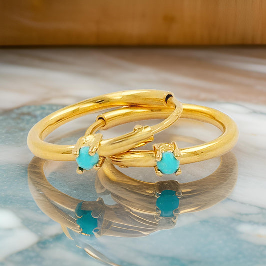 12MM Tube Hoop with 1.5MMTurquoise Blue in 14K Gold Plated Silver |Best For Daily/Party Wear |Ideal for Gift on all occasions to loved ones