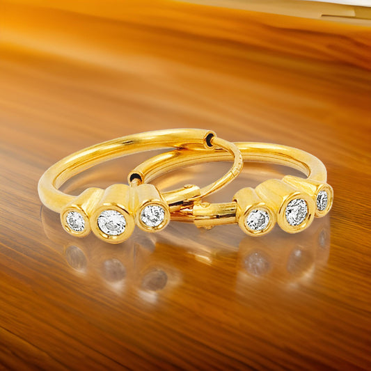 15MM Three Stone Tube Hoop with Diamond in 14K Gold Plated Silver | Best For Daily/Party Wear | Ideal Gift for All Occasions