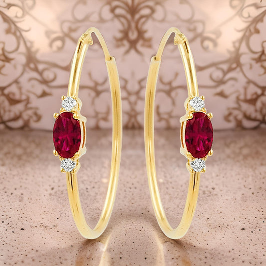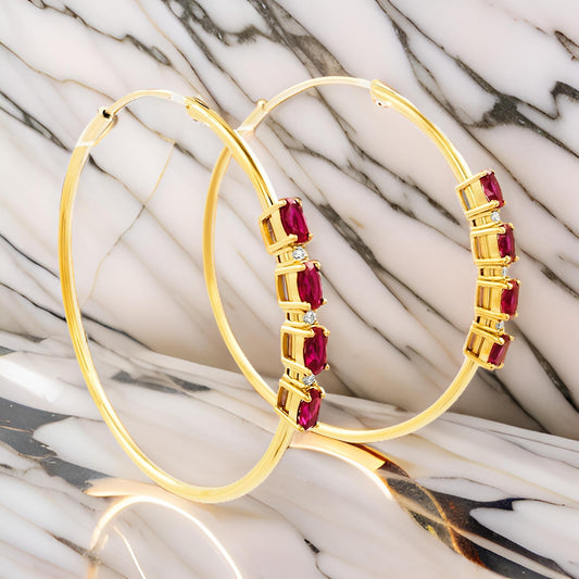 50MM Red Ruby Tube Hoop with Diamonds in 14K Yellow Gold Plated Silver | Perfect For Daily/Party Wear | Ideal Gift for All Occasions