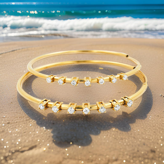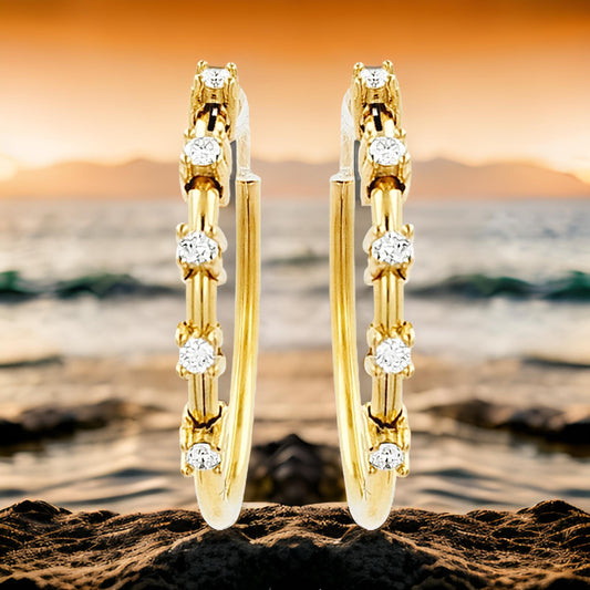 50MM Seven Stone Tube Hoop with Diamonds in 14K Gold Plated Silver | Best For Daily/Party Wear | Ideal Gift for All Occasions