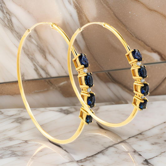 50MM Sapphire Blue Tube Hoop with Diamonds in 14K Gold Plated Silver |Best For Daily/Party Wear | Ideal Gift for All Occasions to loved ones