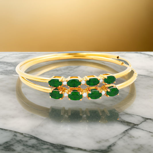 50MM Green Emerald Tube Hoop with Diamonds in 14K Yellow Gold Plated Silver | Perfect For Daily/Party Wear | Ideal Gift for All Occasions