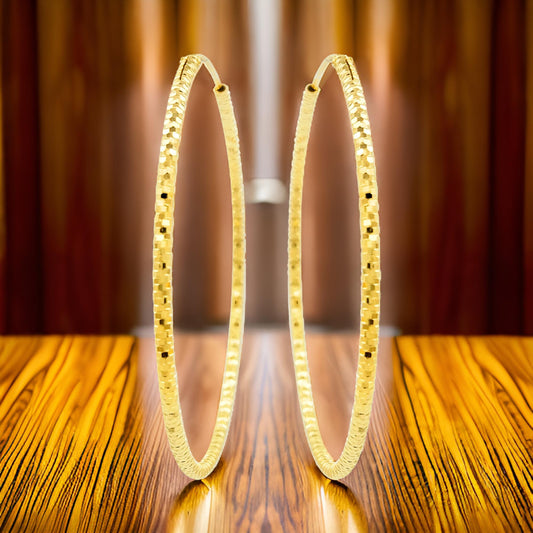 60MM Elegant and Beautiful Pair of Pattern Hoop Earrings in 14K Gold Plated Over Silver |Perfect Daily/Party Wear |Ideal Gift for Loved Ones