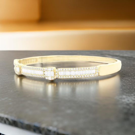2CTW Baguette Cut Bangle in 14K Gold-Plated Silver | Moissanite/Lab-Grown Diamonds | Elegant Jewelry for Women/Girls |Perfect Partywear Gift