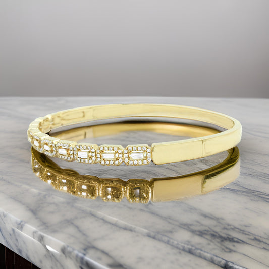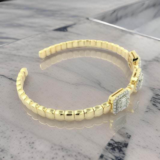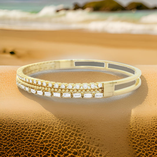 Elegant 1 1/5 CTW Baguette Bead Bangle in 14K Gold-Plated Silver | Moissanite or Lab Grown Diamond | Perfect Partywear & Gift for Women