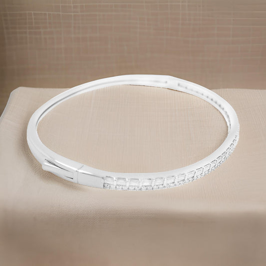 Graceful 1 4/5CTW Bangle Bracelet in 14K Gold-Plated Silver | Available in Moissanite/Lab Grown Diamond| Daily & Party Wear |Jewelry Gift