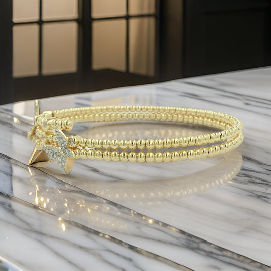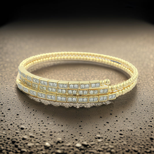 Stunning 14K Gold Plated Silver Two-Layer Beaded Bangle Bracelet | 9/10CTW Moissanite /Lab-Grown Diamond |Jewelry for Women |Gift for All Occasions