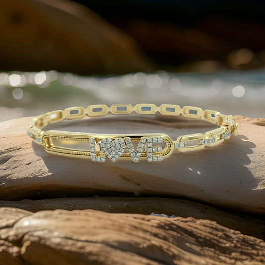 3/10CTW LOVE Symbol Paper Clip Link Bangle in 14K Gold-Plated Silver | Partywear & Personalized Gift Jewelry | Moissanite/Lab-Grown Diamond