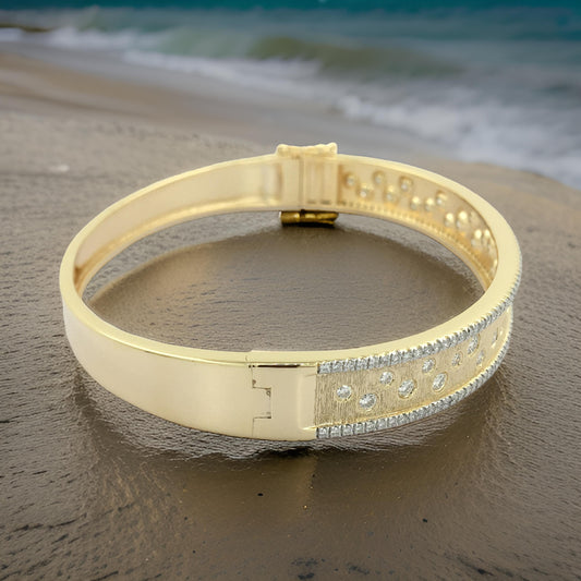 Elegant 7/10CTW Bangle Bracelet in 14K Gold Plated Silver | Pave Set Moissanite/Lab Grown Diamond | Best Gift for All Occasions & Party Wear