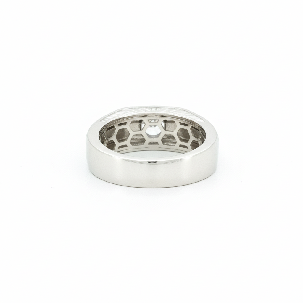 Elevate his style with this striking 14K Gold Plated Silver ring, a perfect blend of modern design and timeless elegance. Featuring a brilliant 1/2 carat total weight (CTW) lab-grown diamond as its captivating center stone, this ring is meticulously Flush-set for a sleek, contemporary look and ultimate security.