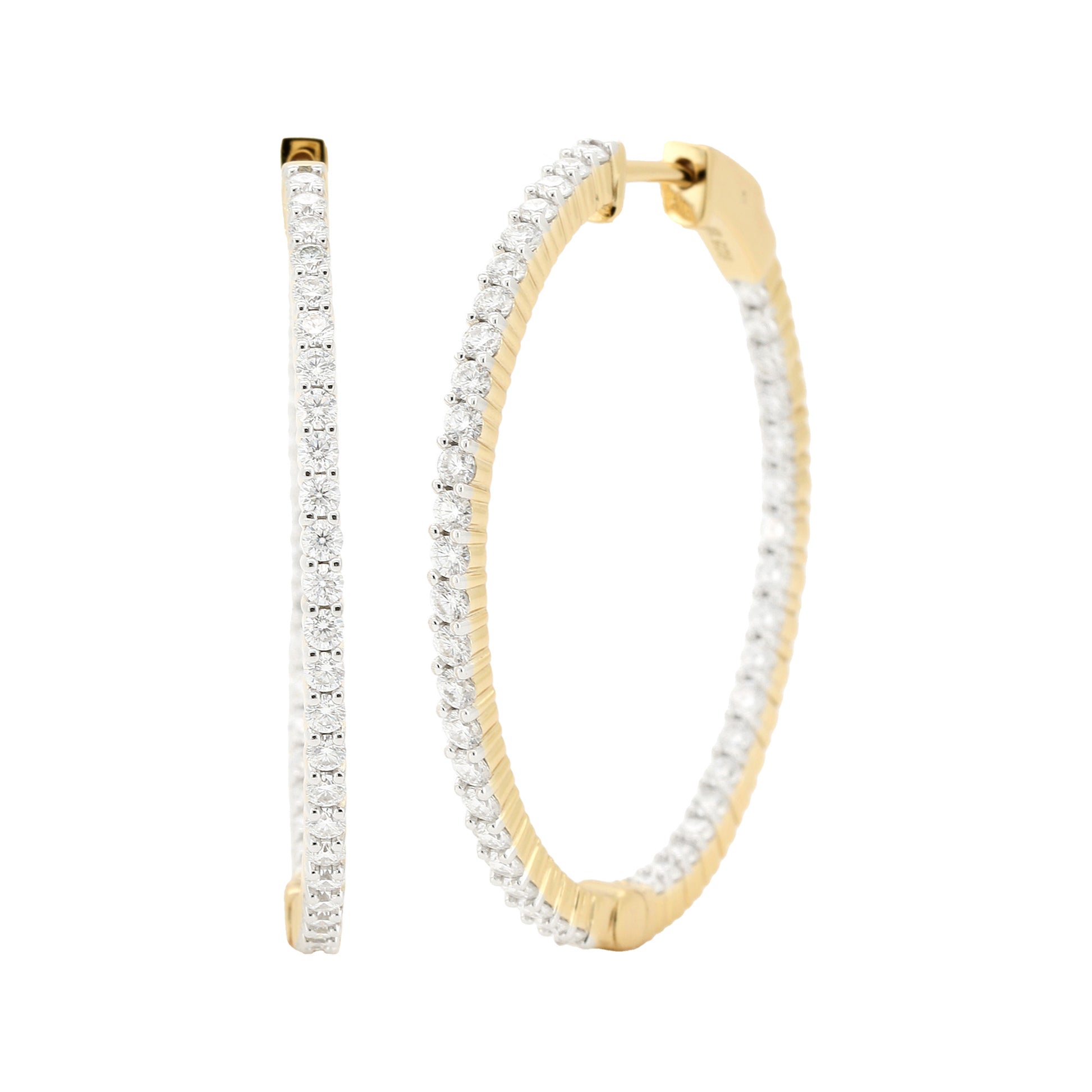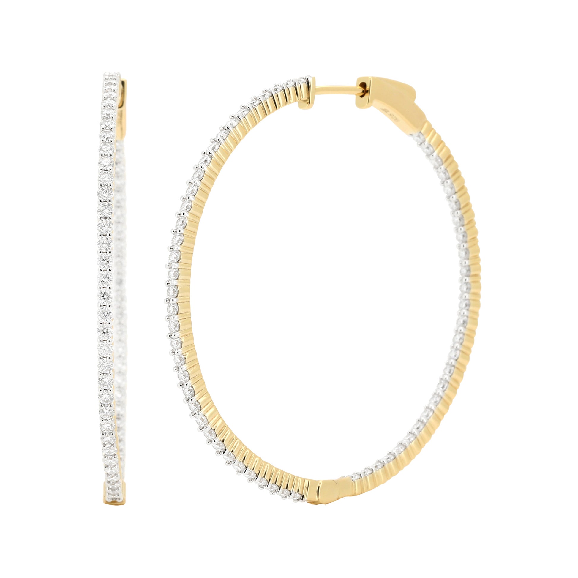 14K Gold Plated Silver Moissanite Diamond Hoop Earrings | Available in 38mm | 2 1/2CTW & 51mm |3 1/2CTW | Classic Prong Set Brilliant Cut Hoops