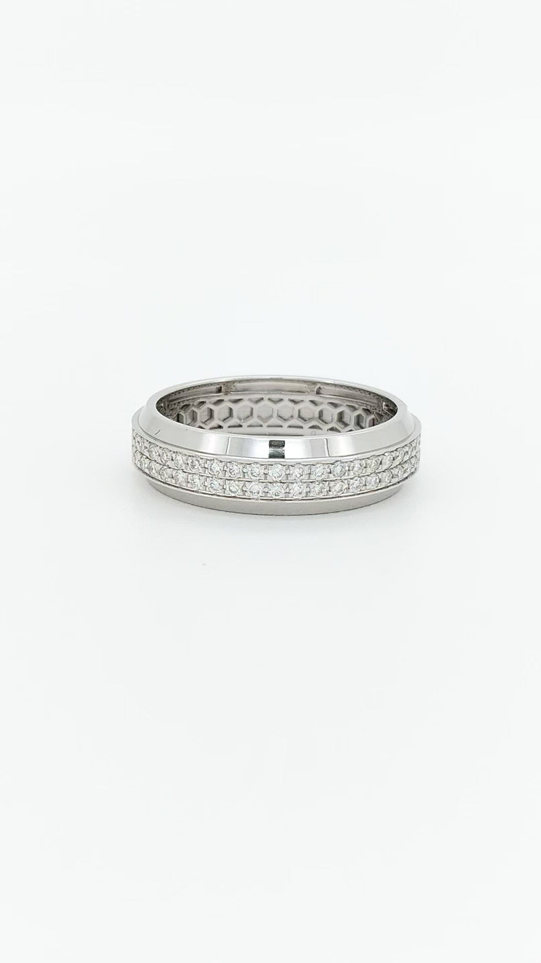 The inner band features a precision CNC-machined geometric honeycomb design, offering not only a modern aesthetic but also a luxurious feel and superior comfort. Whether you're celebrating a milestone, planning a proposal, or simply indulging in timeless beauty, this ring is a perfect choice.