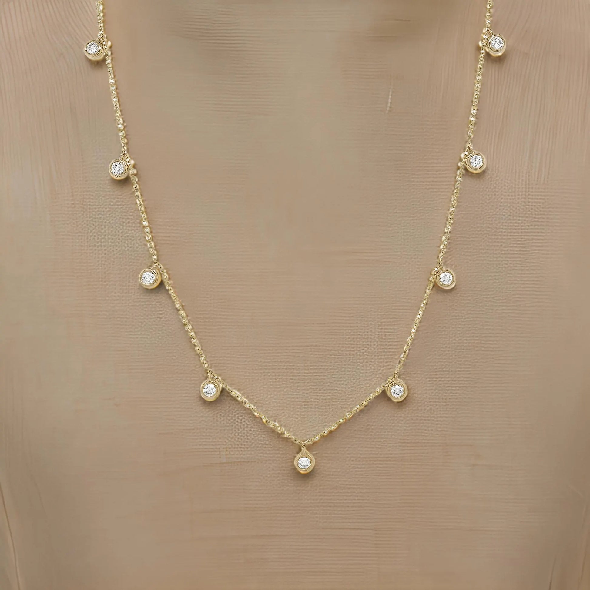Moissanite Diamond Station Necklace 14K Gold Plated Silver Bezel Set Lariat Designed For Elegant and Party Look |For Her On All Occasions
