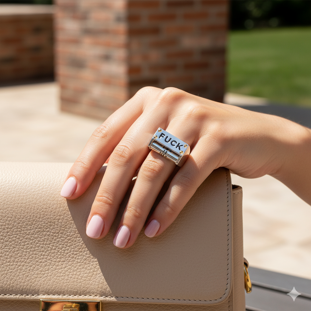 Discover the ultimate conversation piece: The Bold Statement Revolving Ring.