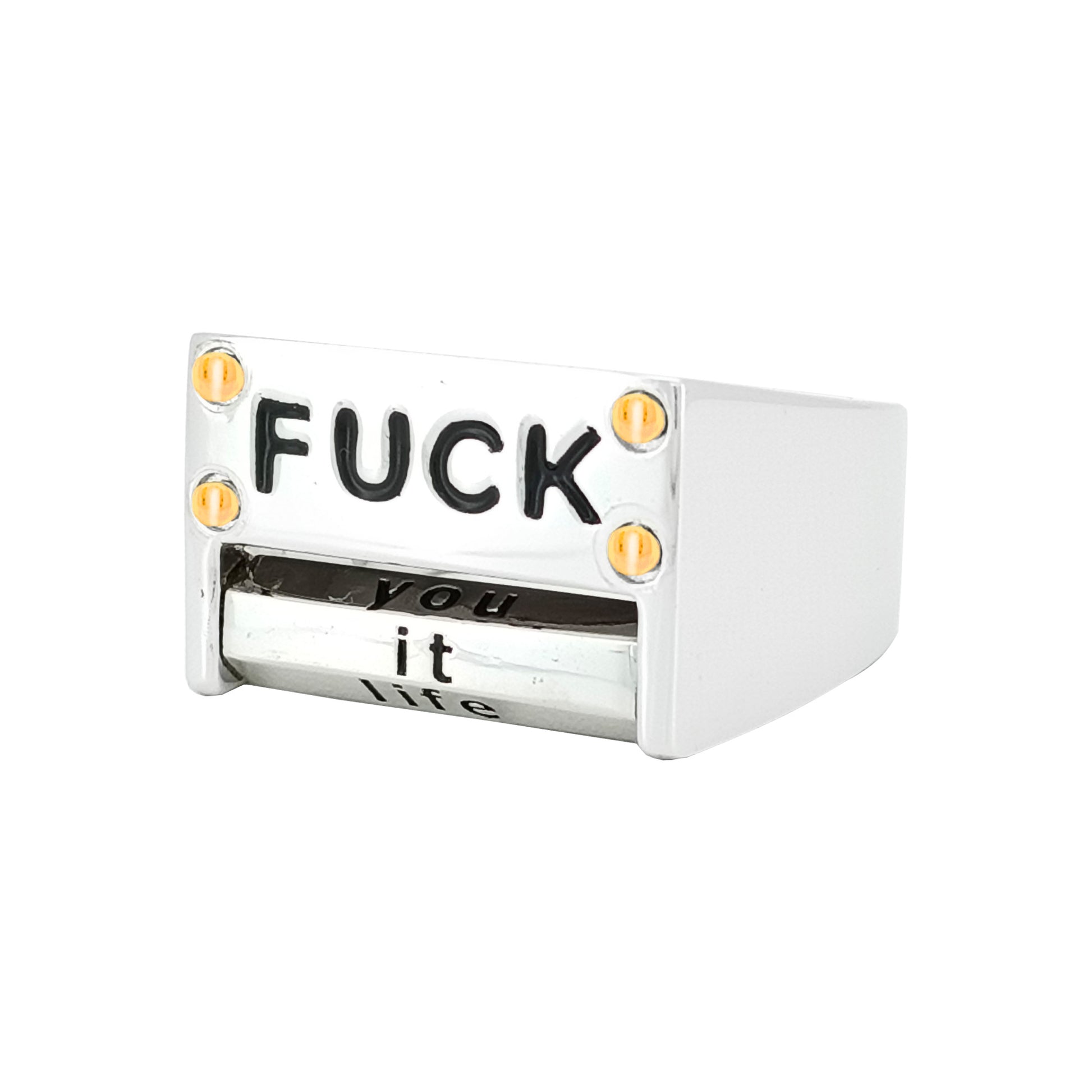 This unique ring is more than just jewelry—it’s a daily mood setter and a playful nod to life's chances. Give the center barrel a spin to land on a variety of playful outcomes, including: 'it,' 'you,' 'me,' 'world,' and 'everything.' It's the perfect fidget accessory for the stylish minimalist.